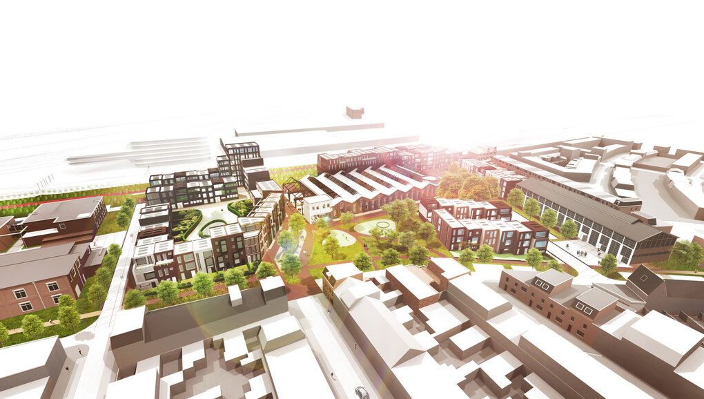 Tussen de 2e Daalsedijk en het spoor, ligt de nieuwe ontwikkelingslocatie van Utrecht met daarin centraal de voormalige Bovenbouwwerkplaats.
