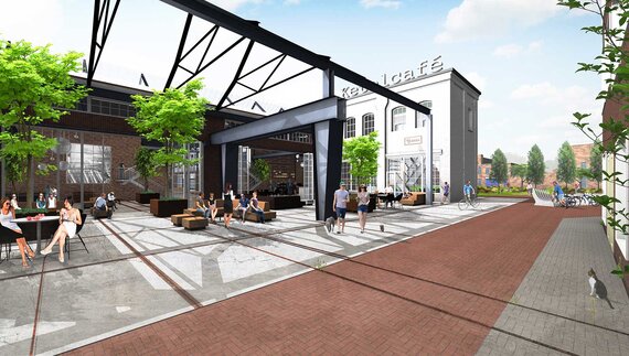De ontsluiting van de units gaat via een binnenstraat, met daaraan ook de galerij van de tweede verdieping. De binnenstraat wordt collectief en levendig en kan ook als verblijfs- en ontmoetingsplek gebruikt worden. De straat is onderdeel en verbonden met het Ketelcafé, waar je kunt werken en wat drinken. De ideale plek voor creatievelingen om te ontmoeten. De materialen die gebruikt worden bij het bouwen van de units en nieuwe binnengevels zijn geïnspireerd op het industriële cultuurhistorisch waardevolle pand.