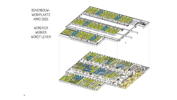 Binnen het industriële historische pand van de Bovenbouwwerkplaats worden woon- en werkunits voorgesteld. De nieuwe creatievelingen kunnen hier hun gang gaan, wonen en werken en dus leven in één gebouw. Het oud-industriële karakter van de Bovenbouwwerkplaats is voelbaar in de woon-werkunits door de overweldigende stalen constructie spanten, het zadeldak met de lichtbeuk. Deze elementen en de extra hoogte van de verdiepingen brengt een zeer ruimtelijk effect met zich mee. De units op de begane grond zijn 30m2 en op de tweede verdieping 50m2. De units kunnen horizontaal en verticaal geschakeld worden, zoals een tetrismodel. De flexibele indeling geeft ruimte om te wonen én te werken binnen de Bovenbouwwerkplaats (in aparte of aan elkaar geschakelde ruimten). Dit is de unieke kans voor kleine ondernemingen, start-ups en ZZP’ers om hun eigen ideale leefomgeving te creëren. Door deze flexibele indeling kan fantasie de vrije loop worden gelaten. Een grote leefkeuken, wellness ruimte of een mooie loft als woning. Het kan allemaal door het schakelen in units!