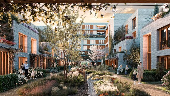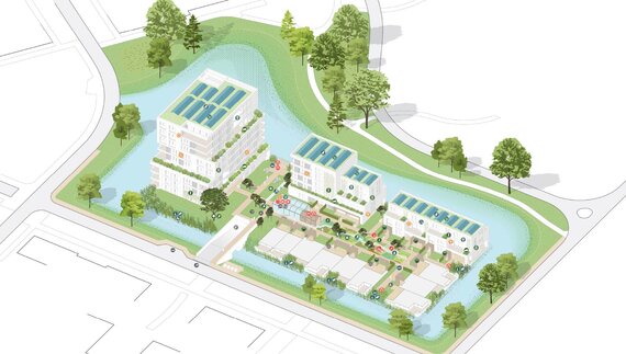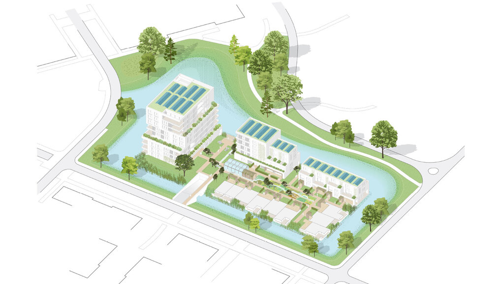 Het wEiland van De Tippe Zwolle zien wij conceptmatig als een collectief woonhof waar verschillende bewoners genieten van hun uitzicht over groen en water, die er van houden om in een kleine gemeenschap te wonen en daaraan hun bijdrage te leveren. Het wEiland is een stoer woonblok met stenen hoeken en zachte waterranden. Er zijn plekken om bij het water te komen. Ondanks de bebouwde randen voelt het plan opvallend open door de verschillende lange zichtlijnen naar het omliggende landschap en woonwijk.