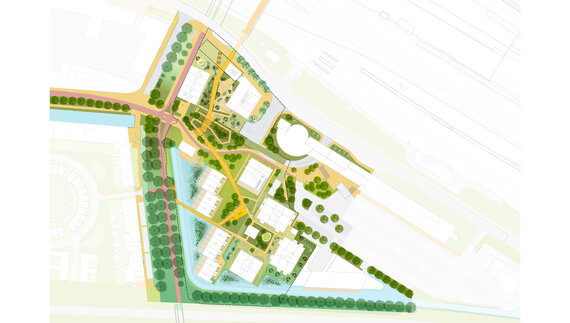 Het landschap is geïnspireerd op de typisch Zwolse IJsseldelta: Gekenmerkt door uiterwaarden als waterbuffers, met bloemrijke weelderige graslanden en overstromingsgebieden met geclusterde en solitaire bomen. Met een rijke ecologie en hoogteverschil, van natte habitat tot de droge hogerliggende habitat, de hellingen en verschillende hoogtes van daktuinen (de winterdijk en de zomerdijk).