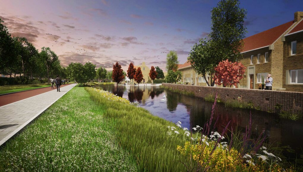 Het groen van het A16park aan de noordzijde trekken we tussen de bouwblokken naar het zuiden als groene vingers. Zo woont iedereen direct aan de groenstructuur. Met innovatieve producten van open verhardingen, minimaal verharden, maximaal groen, planten van grote bomen en slim watermanagement met wadi’s voor water bergen en ook voldoende vasthouden in tijden van droogte, zorgen we een zeer klimaatadaptief plan!