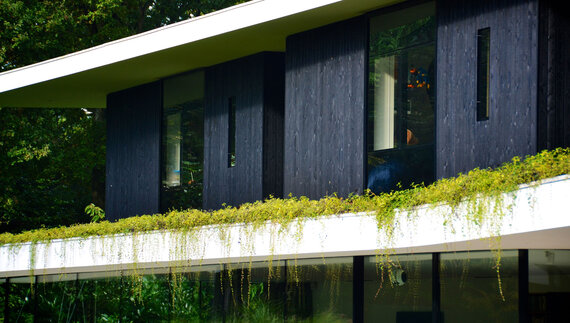 Bovendien wordt de tuin officieel omlijst door het paparazzi-bestendige hekwerk. De lichtgroene en gele daktuin op de tweede verdieping groeit weelderig en bloemen sieren de gangen en gebogen golvende bloemenduinen geven ruimte aan de onderhoudsvrije groenblijvende randen.