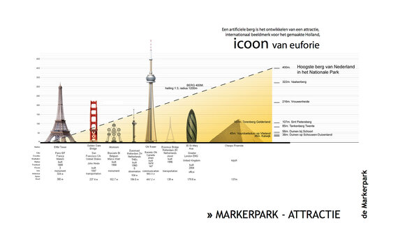 Met een icoon van euforie vieren we de duizend jaar polderbouw in de delta. Door de grondstromen van de ontpoldering als heilige grond tussen het Blocq van Kuffeler en de Marker vuurtoren te verzamelen komt hier het hoogste bergpunt van Nederland te liggen. Een 400meter hoge berg als waterstaatkundig monument met een bezoekerscentrum om uit te leggen aan alle Japanners, Amerikanen en Chinezen hoe Nederlanders aan hun landschap bouwen. Aan de voet van de berg ligt Nieuw Oranjesluizen waar Amsterdammers en Almeerders samen een visje eten. Verbonden aan het vaste land door een dijk met de wegverbinding tussen de A6 en de A7. De Ring van Archipels bestaat verder uit de bestaande archipel IJburg, het eiland Marken, het Markerrif, de Westvaarderseilanden, de Baai van Lelystad en het Enkhuizerzand.