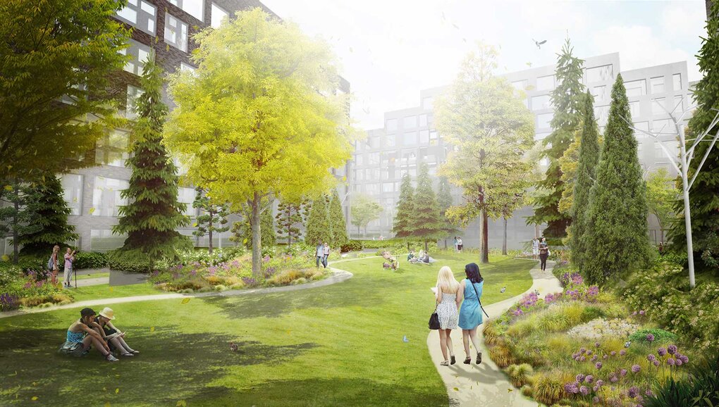 In september 2014 we were approached by PIK Group to make a landscape proposal for the approved masterplan. The masterplan contains the total transformation of the former sugar factory. The old iconic Sugar Factory tower was integrated in the first phase of the plan to preserve the heritage of the site and to create an unique identity.