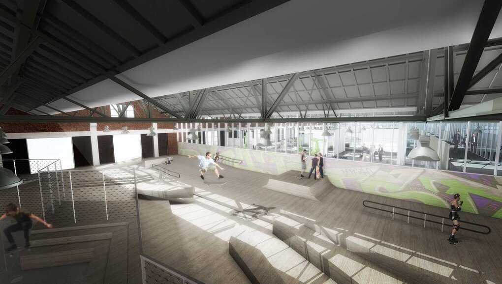 De loods is nu al voor een deel in gebruik door Tranzit, het jeugdcentrum. Aansluitend is er een gedeelte bestemd voor indoor oefenruimte voor Urban Sports. In het overige gedeelte wordt een incubator met test- en democentrum voorzien. Het samengaan van een professionele fris transparante uitstraling voor de bedrijven gaat over doormiddels een programmatisch verloop naar de look en feel van de jongerencultuur binnen het bestaand gebouw en de nieuwe fuifzaal. Deze programmatische combinatie vormt een bijzondere uitdaging binnen het ontwerp.
