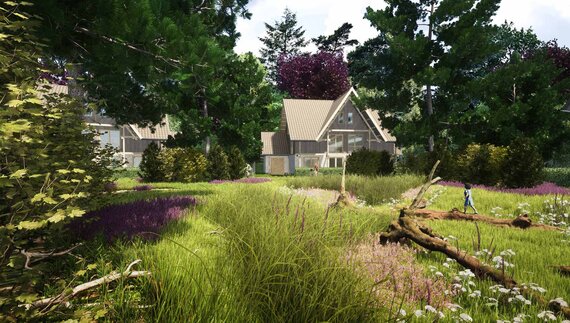 Het derde en laatste veld is de Boskamer. In de geest van de voormalige boskwekerij is op het terrein de Boskamer ontworpen, waarin het samen wonen in het bos centraal staat. Het samen wonen gebeurt onder één dak, waarvan we twee verschillende clusters maken. Daarnaast zijn er ook twee-onder-een-kap-woningen. Je ervaart hier het ultieme gevoel dat je midden in het bos woont. Hier heb je het ultieme Veluwe gevoel, buiten leven op je veranda.