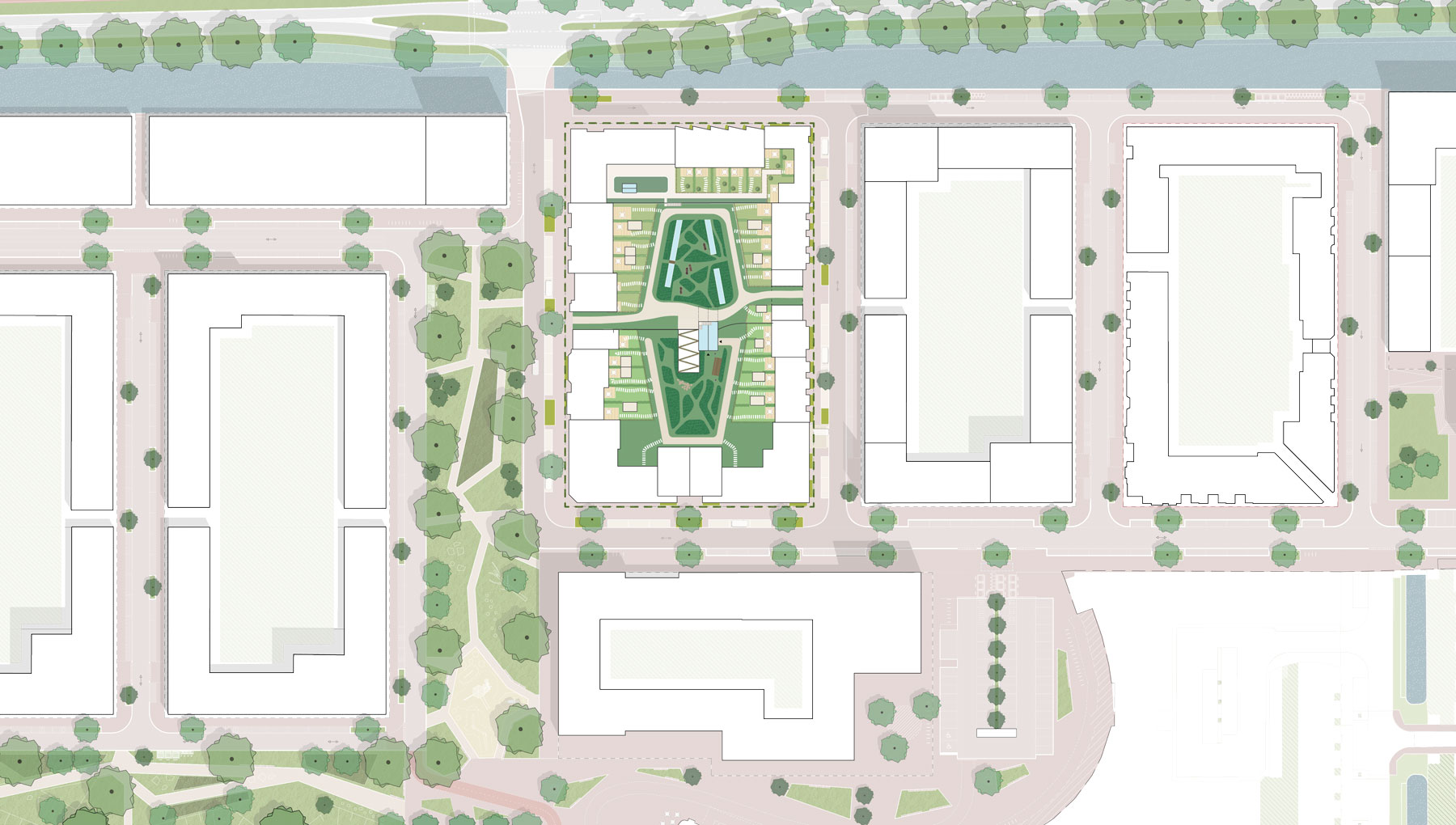 Aan de entreezijde vormt Vivo het gezicht van de wijk. Hier krijgt de architectuur extra nadruk, met bijzondere architectuur, zoals groene accenten bij de doorgangen als uitnodigende poorten. Deze markante openingen in het bouwblok vormen de start van de scharrelroute en verbinden stad, park en binnenterrein op een vanzelfsprekende manier.