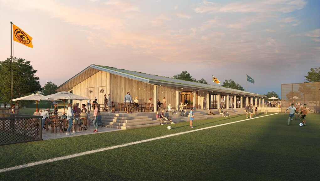 Een modern clubhuis met een groot terras op de zon. Eén terras voor de tennisliefhebbers en één terras voor de voetballers, maar een gedeelde grote bar. Dit is een belangrijke plek voor het dorp en zal alleen nog maar belangrijker worden in de toekomst nu dat alles fris en nieuw zal zijn. Sportclubs vormen het sociale hart van een lokale gemeenschap. Samen met het Dorpshuis en IKC De Paradijsvogel is er hier iedere dag en iedere avond wel een activiteit en leven in de brouwerij. Het landgoed Vogelenzang is de trots van het dorp, maar deze nieuwe sportfaciliteiten en sociale infrastructuur zullen goed op de tweede plaats staan. Dit is waarom je in een dorp gaat wonen.